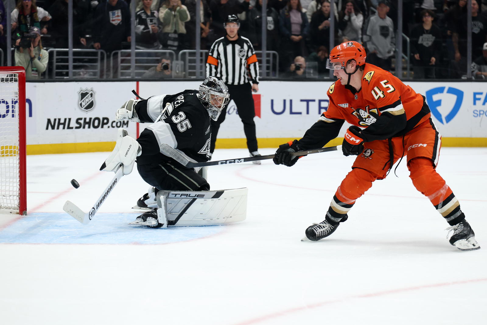 Hughes’ slap shot goal with 2:56 to go in the second made it 4-4.